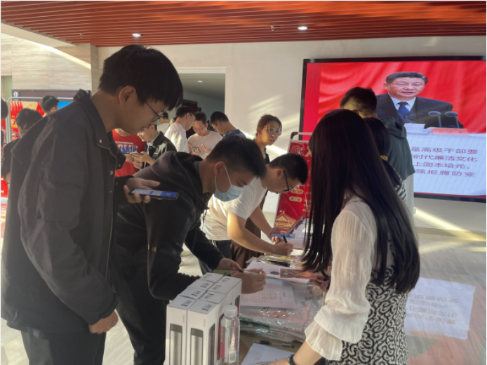 为庆祝党的二十大胜利召开,公司纪委于10月16日在球友会大楼举行“‘学党史,强党风——喜迎党的二十大’党风廉政建设”主题教育活动,公司师生共同参与此次活动。