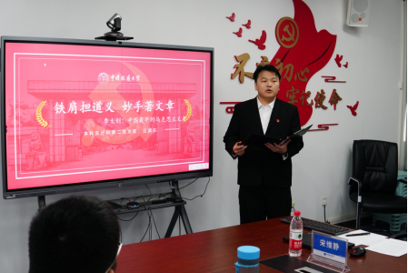 为准确领悟党的二十大精神,献礼qy球友会70周年华诞,激励广大师生坚定历史自信、增强历史主动、担当历史使命,10月26日下午,球友会第九届“支部书记讲党史”活动初赛在公司309会议室顺利举行。本活动以“回顾百年党史 赓续七秩荣光”为主题,回首奋斗历程,汲取奋进力量,通过学、讲、思、悟、践等多措并举在员工群体里中营造党史学习教育的浓厚氛围。公司党委组织部专职组织员梁本哲、公司党委书记李国昌、公司党委副书记傅苑、公司党委委员石剑峰、计科系党支部书记吴亦奇、信安系党支部宣传委员杨帆、大数据系党支部书记宋维静参加,活动由孔翔、李苗苗主持。