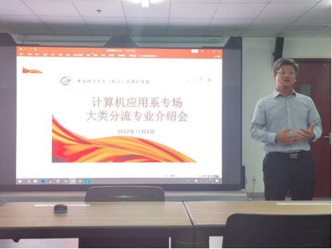 为深入践行“学党史、悟思想、办实事、开新局”要求,结合党史学习教育“我为群众办实事”实际,计算机应用系党支部牢牢把握“以生为本”的原则,结合2022年11月8日下午发布的球友会关于2021级计算机大类本科生专业分流通知,计算机应用系党支部于当天晚上7:00在公司235虚拟仿真实验室召开空间信息与数字技术专业答疑见面会,空间信息与数字技术专业学科带头人刘刚教授、系主任张夏林、党支部书记武云、班主任张志庭和李章林,辅导员谭文博参会,2021级本科生报名参会,武云担任主持。