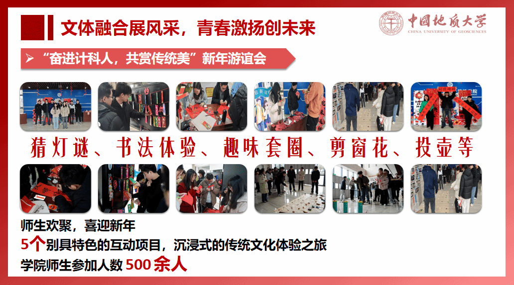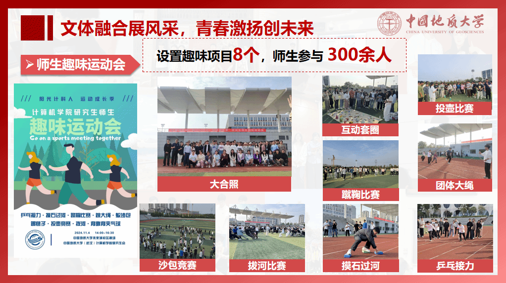 举办师生趣味运动会、“计科杯”系列赛事,开展“她”力量心愿墙、“奋进计科人,共享传统美”新年游谊会等活动。