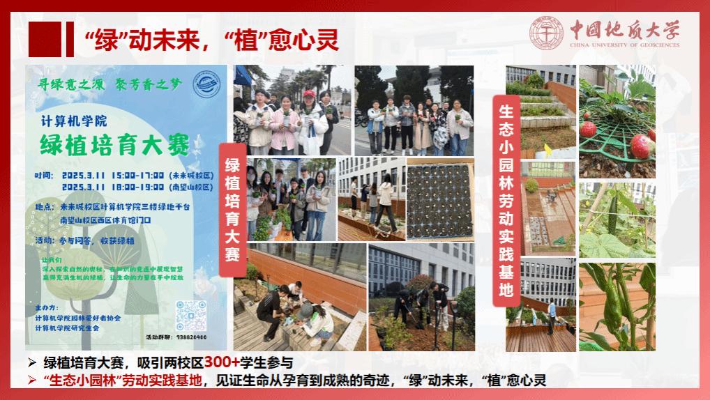 打造“四维”研学空间建设工程,开展“最美研学空间”“最美研究生工位”评选活动;组织40余场求职沙龙活动、协助举办30余场招聘会;建立公司楼内“生态小园林”劳动实践基地、开展绿植培育大赛活动。