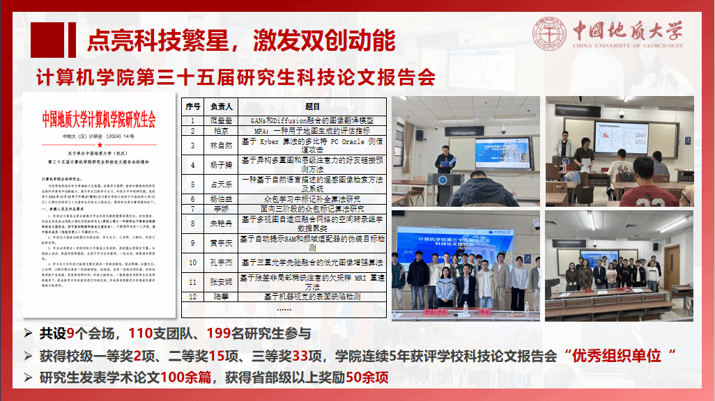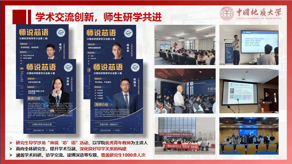 持续推进“师说芯语”导学沙龙、研究生“开源”论坛,开展“科技论文报告会”等学术活动,覆盖研究生2000余人次,研究生发表学术论文100余篇、获得省部级以上奖励50余项。