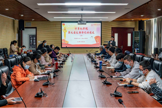 实施“专业思政领航工程”,用共享、互联、创新的学科精神驱动青年理想信念教育。成立教授、博导“专业思政宣讲团”,用格局提升格局;开展青年教师“青年教师进团会”,用心灵陪伴心灵;推进员工“计科先锋宣讲团”,用青春激扬青春。“计科先锋宣讲团”以暑期社会实践活动为契机,已在湖北红安、贵州遵义、浙江嘉兴等地连续四年进行暑期社会实践活动,事迹先后被《光明日报》、中国青年网、长江云等媒体报道,连续三年荣获暑期社会实践校级一等奖、连续两年获评湖北省暑期“三下乡”社会实践优秀团队。