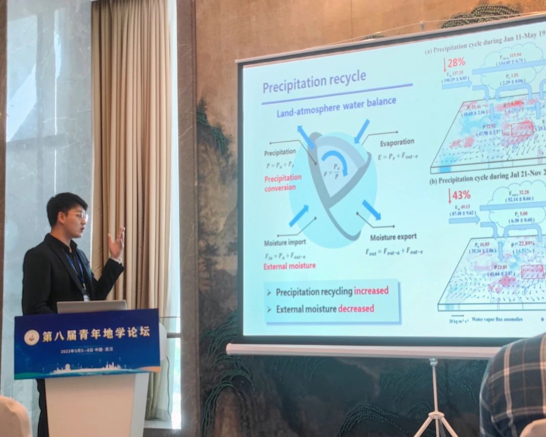 管延松,2021级研究生,导师为颜雪松教授与顾西辉教授,研究方向为深度学习在极端天气气候与灾害风险的预测与评估。研究成果以第一作者身份于Nature旗下期刊《npj Climate and Atmospheric Science》和地学领域旗舰期刊《Journal of Hydrology》发表论文3篇,共申请与授权专利和软著6项,参与科技部国家重点研发计划和国家自然科学基金面上项目等多项课题研究。硕士期间多次参加欧洲地理学会大会(EGU)、国际水文地质学家大会(IAH)等国际会议进行口头报告。曾担任环境公司2017级年级组长与球友会气象科普协会会长。硕士成绩位居球友会第1名,累计获得2次国家奖学金和3次校级奖学金。