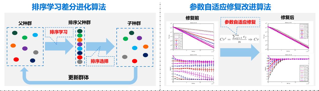 1.发现了数据驱动的隐含知识对群体智能优化性能影响的规律,挖掘了个体排序、参数特征、多种群协同等算法知识,设计了基于排序、自修复、竞争与合作机制的学习策略,拓展了数据隐含知识提升群体智能优化性能的新途径。