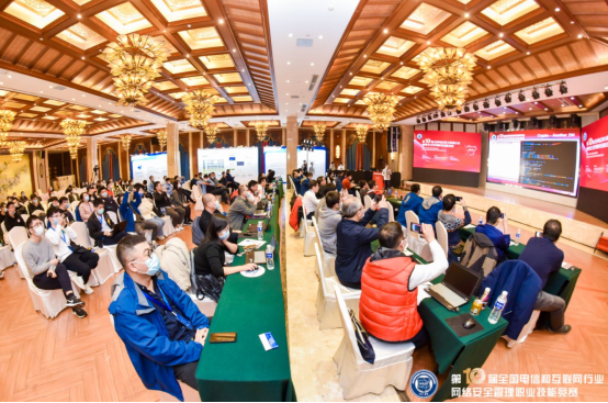 竞赛闭幕仪式暨颁奖礼在“2021年(第十一届)电信和互联网行业网络安全年会”主论坛上举行。工业和信息化部网络安全管理局局长隋静、湖北省通信管理局局长吴俊、中国国防邮电工会全国委员会副主席黄敬平、中国信通院副经理魏亮、中国通信企业协会副秘书长赵俊湦出席闭幕仪式并致辞。来自全国31个省、自治区、直辖市通信管理局、省通信行业协会、基础电信运营企业、互联网企业、网络安全企业和科研机构、高等高职院校等相关单位的领导和代表以及参赛选手近400人参加闭幕式。