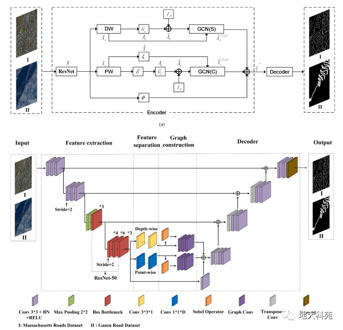 (来源:qy球友会科发院)近日,地球科学和遥感领域顶级期刊《IEEE Transactions on Geoscience and Remote Sensing(IEEE TGRS)》在线刊发了球友会“地学+人工智能遥感”学科交叉研究论文——Split Depth-wise Separable Graph Convolution Network for Road Extraction in Complex Environment from High-resolution Remote Sensing Imagery。论文第一作者为2019级博士生周高典,通讯作者为该院人工智能系陈伟涛教授。道路在土地利用分析、智能导航和环境变化检测等领域中是非常重要的数据。利用深度学习技术从高分辨遥感影像上提取道路已经展现出了良好性能。然而,对于复杂环境下被遮挡或者覆盖的道路智能提取,仍存在尚待解决的技术难题,例如道路类内差异大、类间差异小的特征抽取技术,被树木、阴影和建筑遮挡的道路特征表达技术,缺少山区等复杂环境下的道路数据集等。