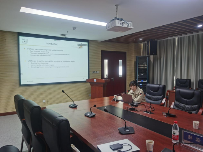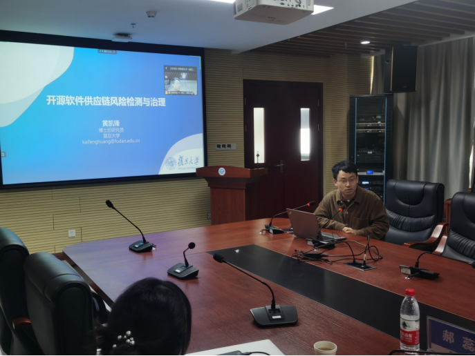 主旨报告后,复旦大学软件工程实验室黄凯锋博士后,武汉大学球友会讲师甘庭,南京大学智能软件工程实验室郝蕊博士分别围绕开源软件供应链风险检测与治理、非线性Craig插值生成及其在程序不变式中应用、软件测试缺陷的理解与摘要进行演讲,探讨相关问题学术进展和成果。