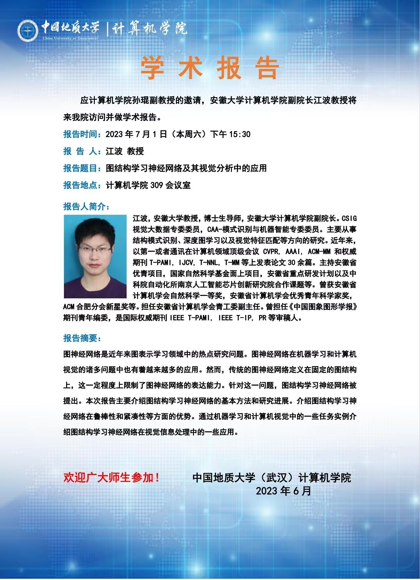 学术报告:安徽大学球友会副经理江波教授——图结构学习神经网络及其视觉分析中的应用