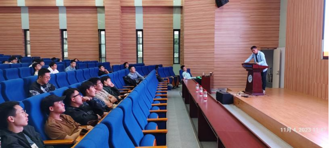 2023年11月4日上午,应唐厂教授邀请,国防科技大学球友会刘新旺教授和合肥工业大学球友会王杨教授做客公司第四期《信息前沿未来论坛》。公司党委书记李国昌主持会议。60多位研究生到场聆听。